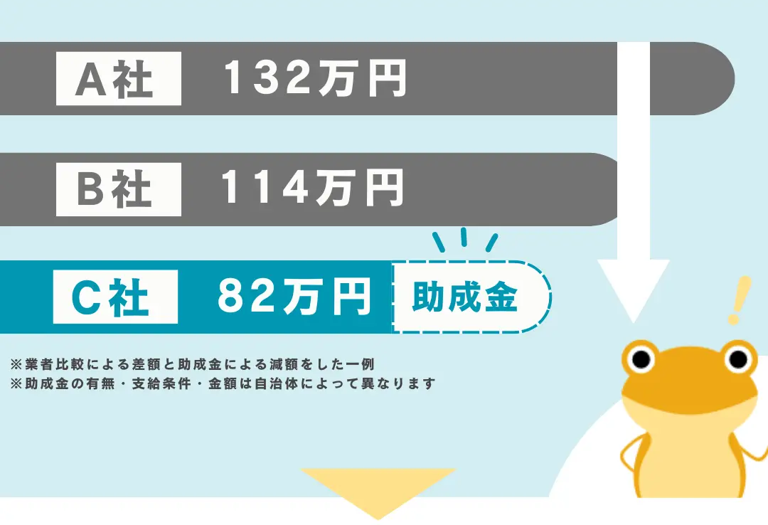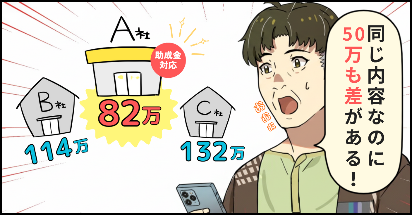 独自の施工店ネットワークを持っていて、地域のデータも熟知しているから、業者比較と助成金活用して相場より50万円以上安くなることも珍しくないんですね。